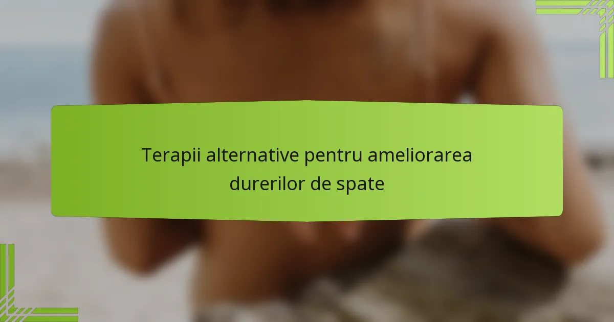 Terapiile alternative pentru ameliorarea durerilor de spate includ diverse metode care vizează reducerea disconfortului și îmbunătățirea mobilității. Aceste terapii se concentrează adesea pe abordări holistice, abordând atât aspectele fizice, cât și cele mentale ale gestionării durerii.