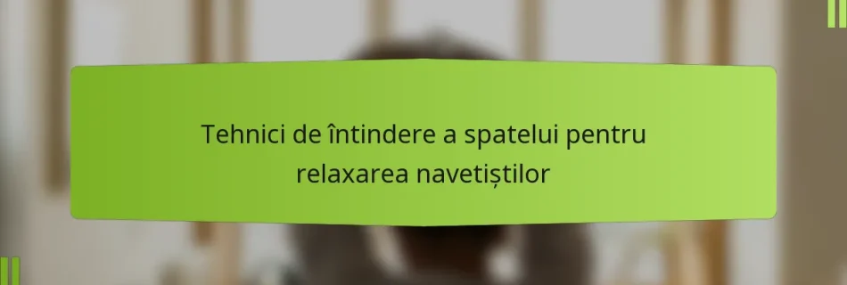 Tehnicile eficiente de întindere pentru ameliorarea durerilor de spate includ o combinație de întinderi statice și dinamice, precum și utilizarea rolelor din spumă și yoga. Aceste metode vizează diferite zone ale spatelui și ajută la reducerea tensiunii, îmbunătățirea flexibilității și promovarea relaxării musculare generale.