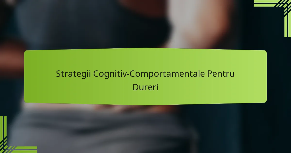 Strategiile cognitive-comportamentale pentru gestionarea durerii implică tehnici care ajută indivizii să-și schimbe percepțiile asupra durerii și să dezvolte mecanisme de coping mai sănătoase. Aceste strategii se concentrează pe schimbarea tiparelor de gândire și comportament negative care pot agrava experiențele dureroase.
