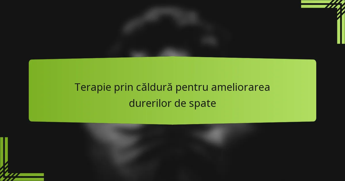 Terapia prin căldură pentru ameliorarea durerilor de spate implică aplicarea căldurii pe zona afectată pentru a reduce disconfortul și a promova vindecarea. Această metodă este utilizată frecvent pentru a relaxa mușchii, a îmbunătăți circulația sângelui și a reduce rigiditatea.
