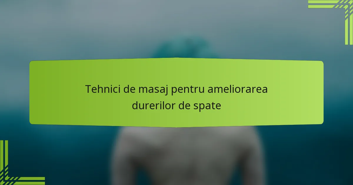 Care sunt principalele tehnici de masaj pentru ameliorarea durerilor de spate?